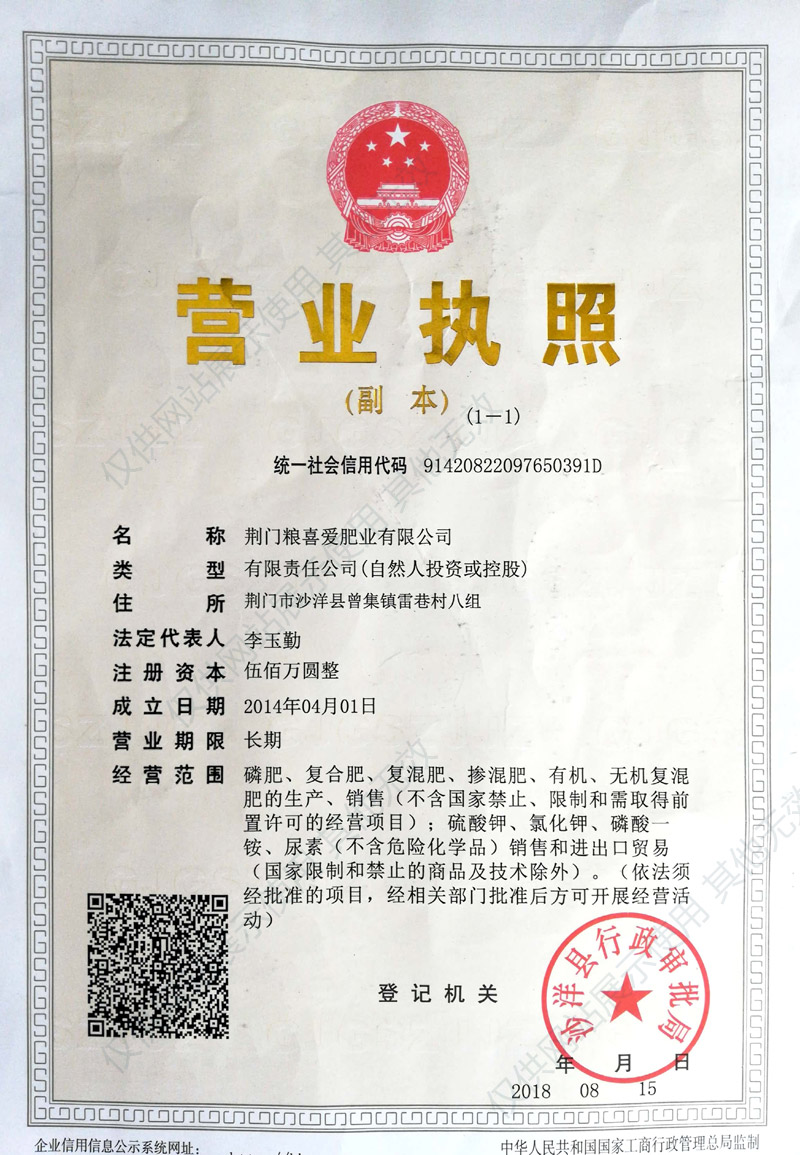 荊門(mén)糧喜愛(ài)肥業(yè)有限公司自成立以來(lái),始終堅(jiān)持“超前的技術(shù)研發(fā),創(chuàng)新的營(yíng)銷(xiāo)理念”這一發(fā)展宗旨,成立了多個(gè)三農(nóng)服務(wù)站,以不斷提升企業(yè)的技術(shù)研發(fā)和創(chuàng)新能力?! 〕掷m(xù)創(chuàng)新,面對(duì)更為廣闊的發(fā)展空間,荊門(mén)糧喜愛(ài)肥業(yè)有限公司將以“誠(chéng)信立企,服務(wù)為先”的企業(yè)準(zhǔn)則...